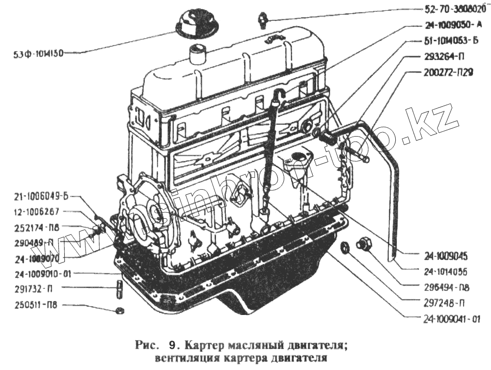 Каталог запасных частей к технике: РАФ-2203. Картер масляный и вентиляция картера двигателя