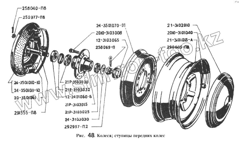 Каталог запасных частей к технике: РАФ-2203. Колеса, ступицы передних колес