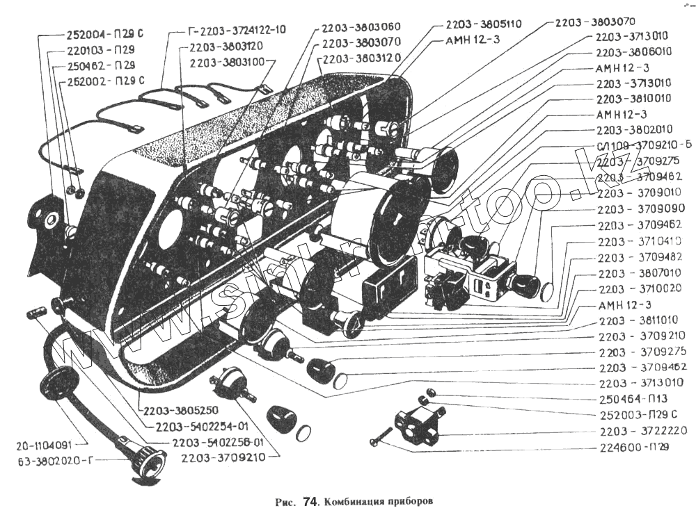 Каталог запасных частей к технике: РАФ-2203. Комбинация приборов