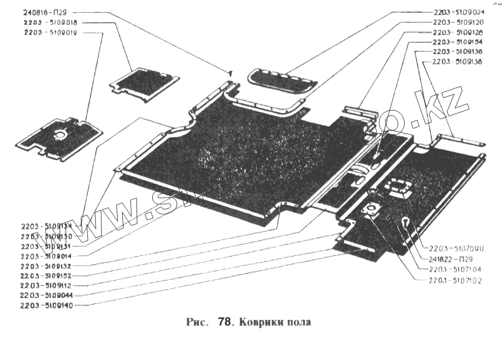 Каталог запасных частей к технике: РАФ-2203. Коврики пола