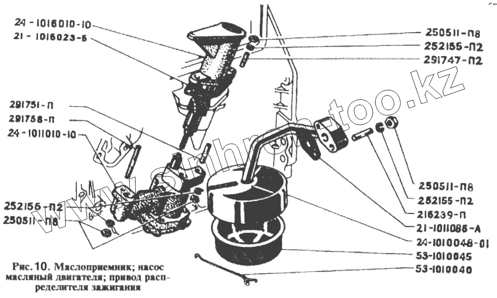 Каталог запасных частей к технике: РАФ-2203. Маслоприемник, насос масляный двигателя, привод распределителя зажигания