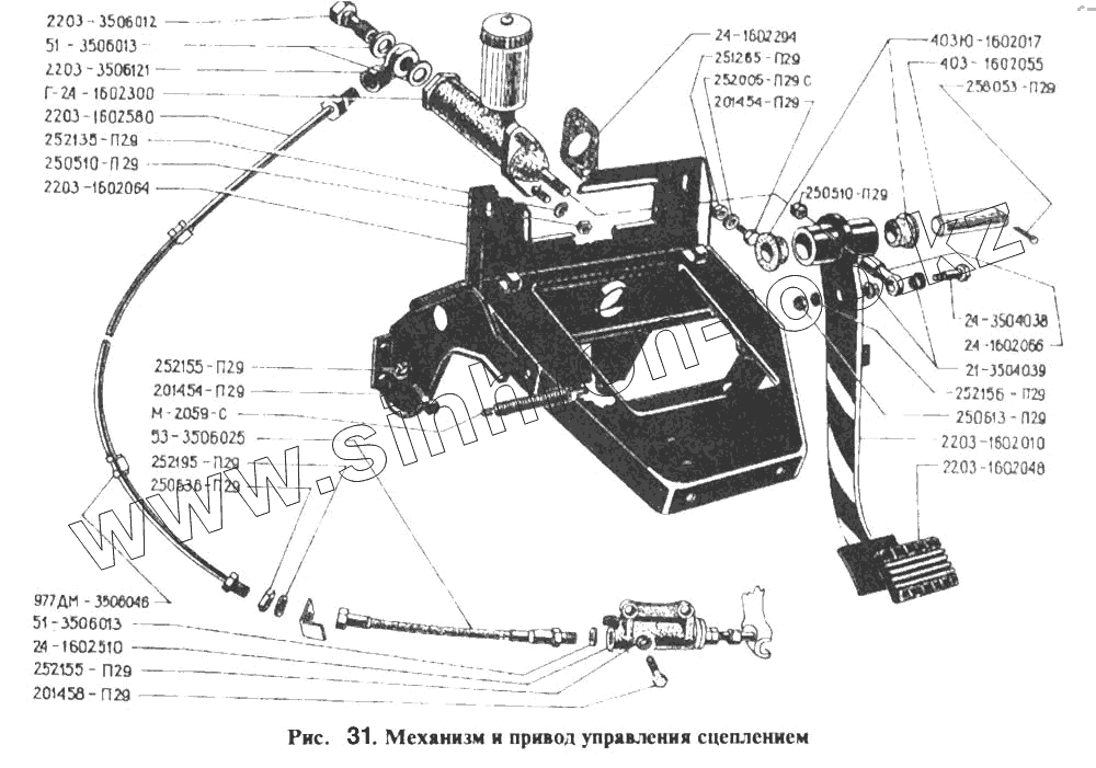 Каталог запасных частей к технике: РАФ-2203. Механизм и привод управления сцеплением