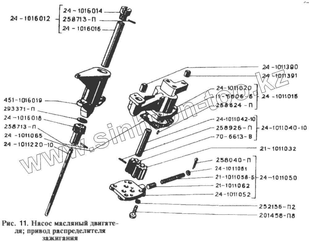 Каталог запасных частей к технике: РАФ-2203. Насос масляный двигателя, привод распределителя зажигания