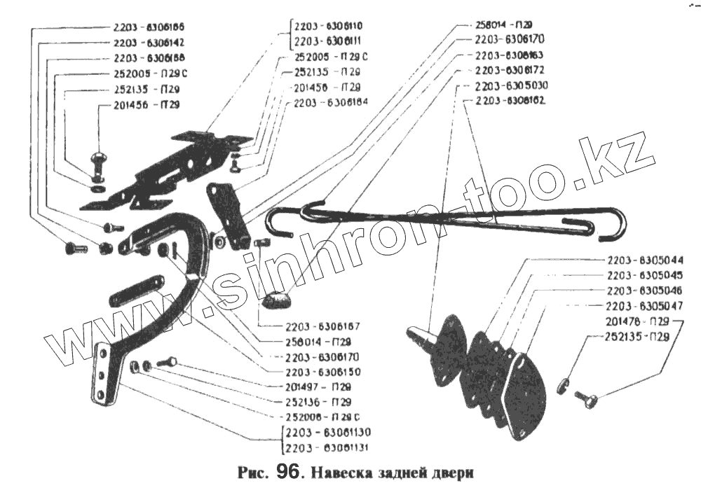 Каталог запасных частей к технике: РАФ-2203. Навеска задней двери