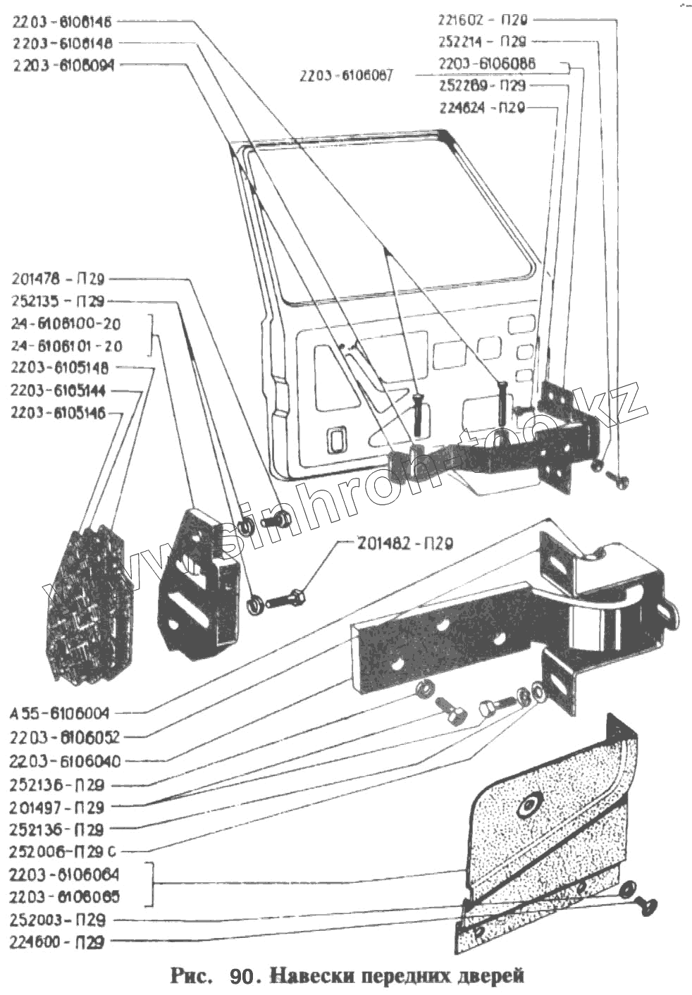 Каталог запасных частей к технике: РАФ-2203. Навески передних дверей