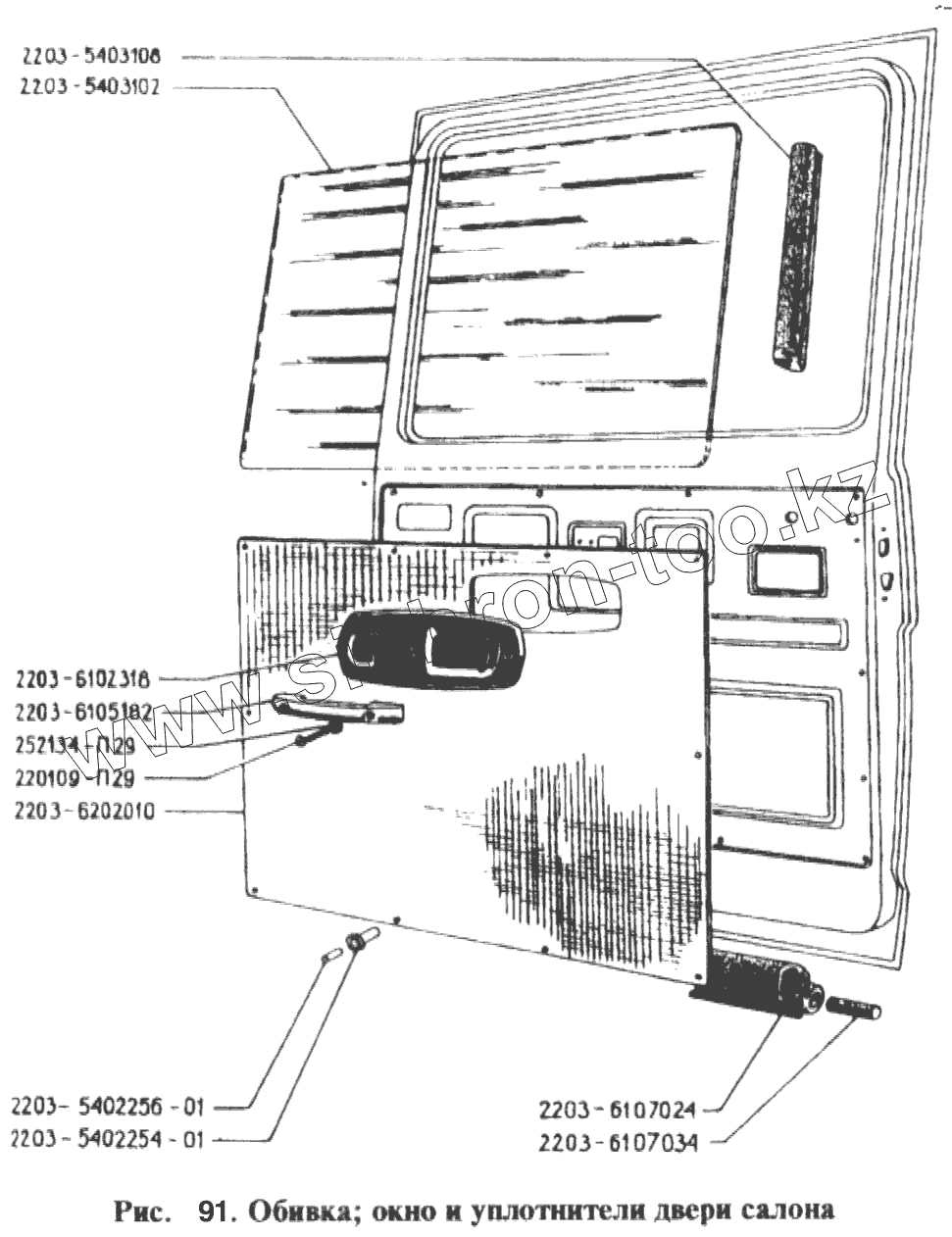 Каталог запасных частей к технике: РАФ-2203. Обивка, окно и уплотнители двери салона