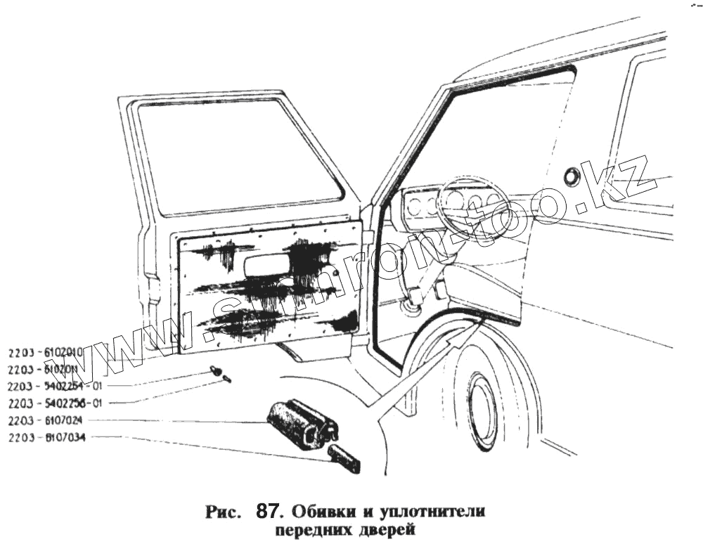Каталог запасных частей к технике: РАФ-2203. Обивки и уплотнители передних дверей