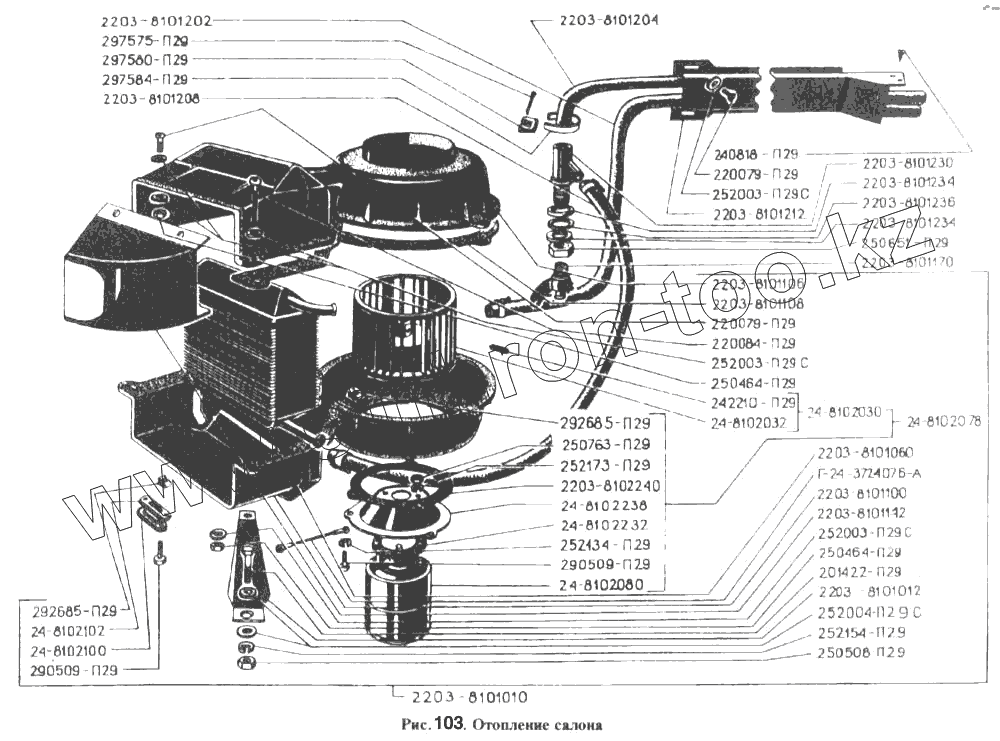 Каталог запасных частей к технике: РАФ-2203. Отопление салона