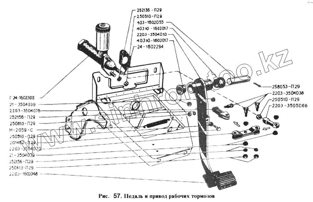 Каталог запасных частей к технике: РАФ-2203. Педаль и привод рабочих тормозов