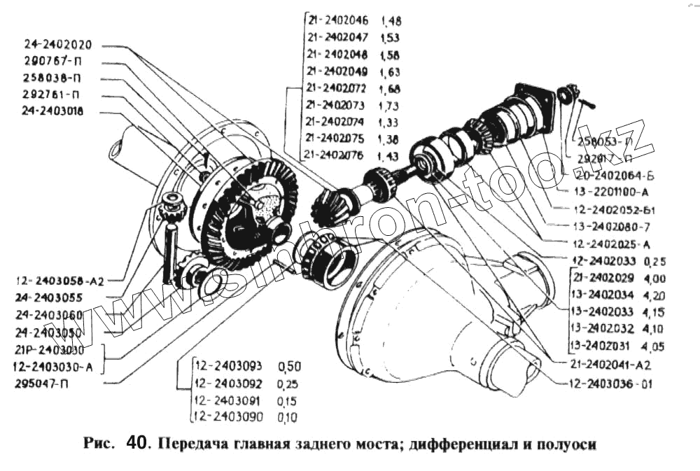 Каталог запасных частей к технике: РАФ-2203. Передача главная заднего моста, дифференциал и полуоси
