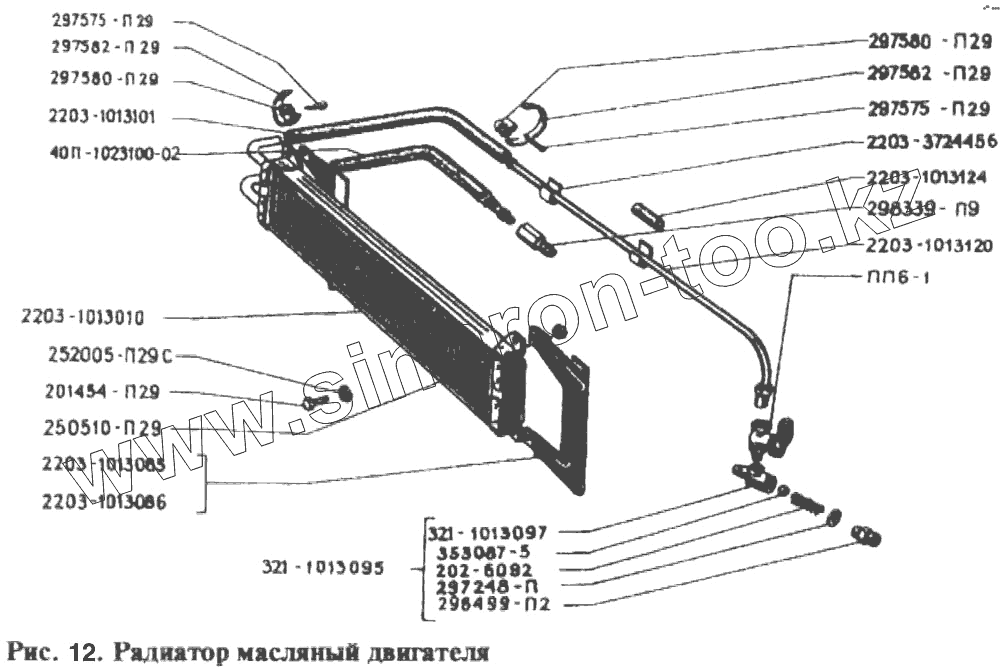Каталог запасных частей к технике: РАФ-2203. Радиатор масляный двигателя