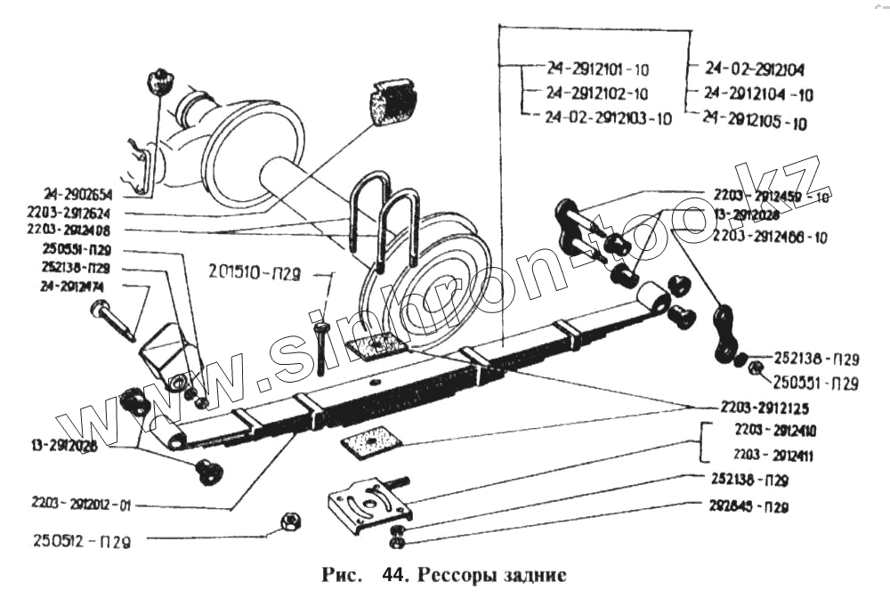 Каталог запасных частей к технике: РАФ-2203. Рессоры задние
