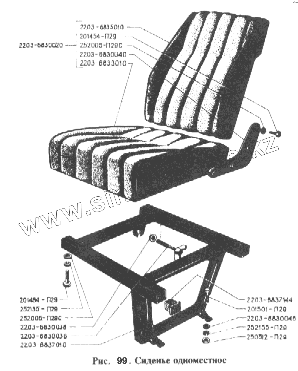Каталог запасных частей к технике: РАФ-2203. Сиденье одноместное