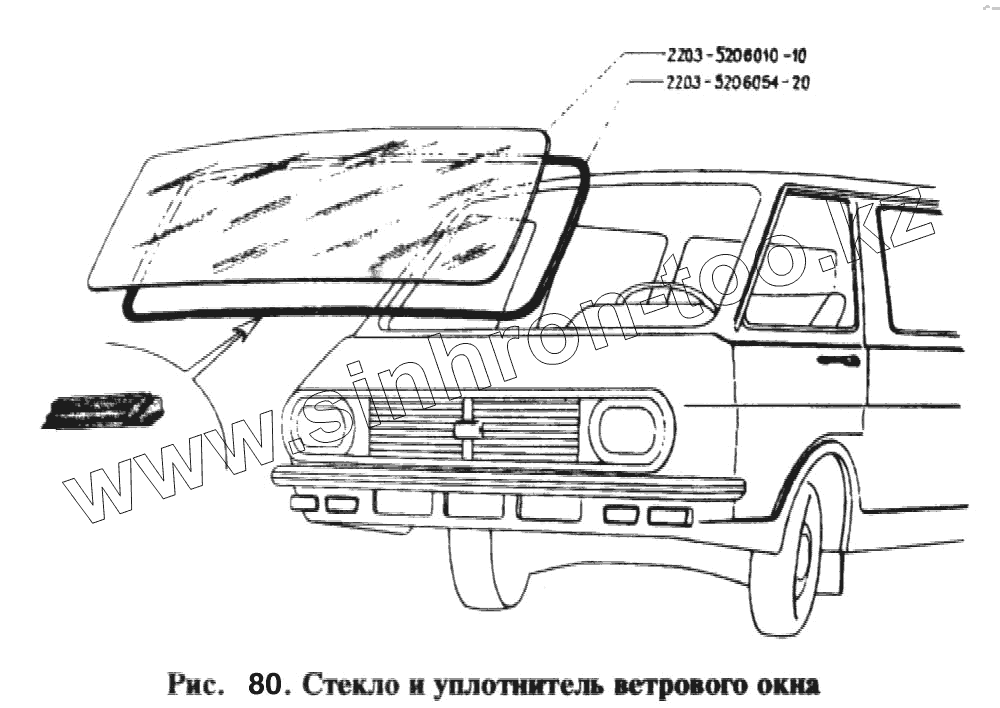Каталог запасных частей к технике: РАФ-2203. Стекло и уплотнитель ветрового окна