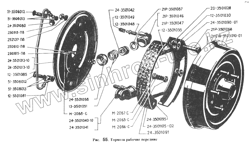 Каталог запасных частей к технике: РАФ-2203. Тормоза рабочие передние