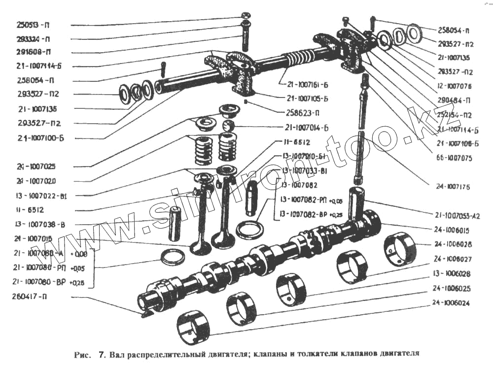 Каталог запасных частей к технике: РАФ-2203. Вал распределительный, клапаны и толкатели клапанов двигателя