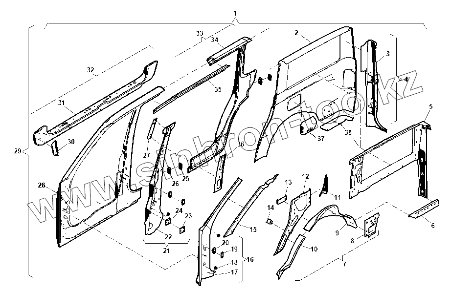 Каталог запасных частей к технике: УАЗ Патриот КЛАССИК. Детали боковины