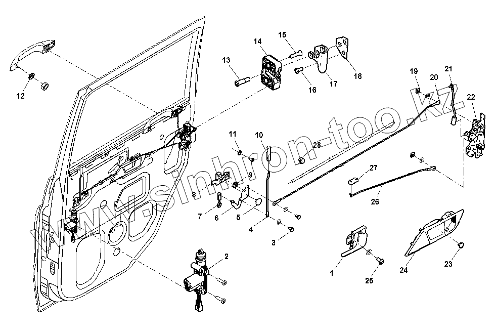 Каталог запасных частей к технике: УАЗ Патриот КЛАССИК. Ручки и замки двери задней правой