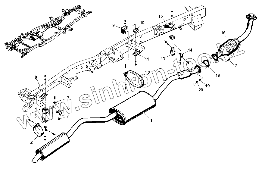Каталог запасных частей к технике: УАЗ Патриот КОМФОРТ. Глушитель основной, резонатор двигателя