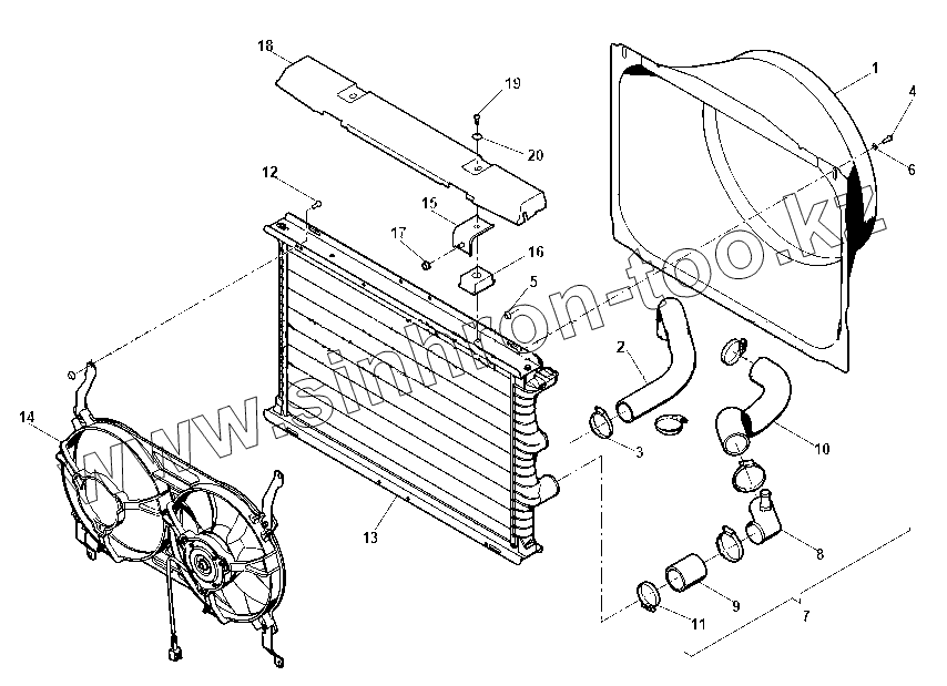 Каталог запасных частей к технике: УАЗ Патриот КОМФОРТ. Радиатор охлаждения