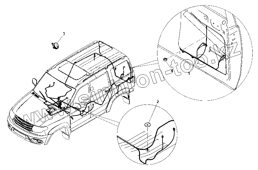 Каталог запасных частей к технике: УАЗ Патриот КОМФОРТ. Жгут проводов по кузову