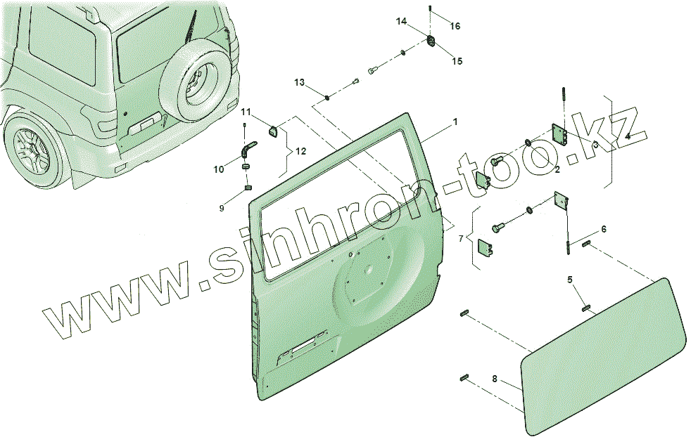 Каталог запасных частей к технике: УАЗ Патриот ЛИМИТЕД 316300-0000305-11. Дверь задка