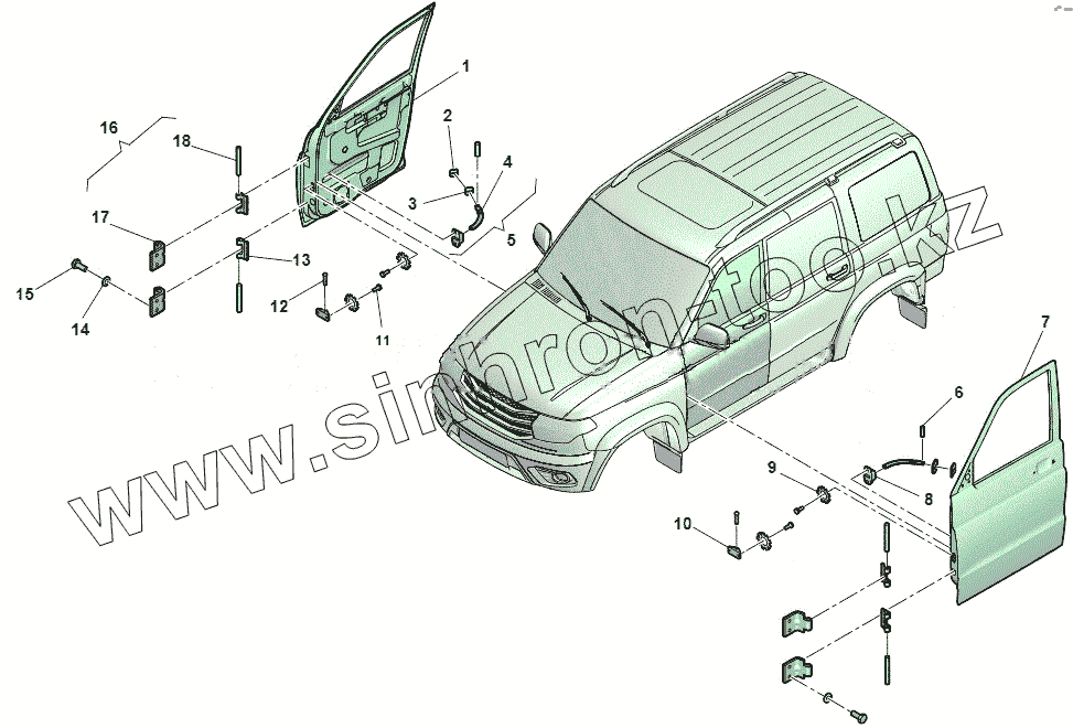 Каталог запасных частей к технике: УАЗ Патриот ЛИМИТЕД 316300-0000305-11. Двери передние