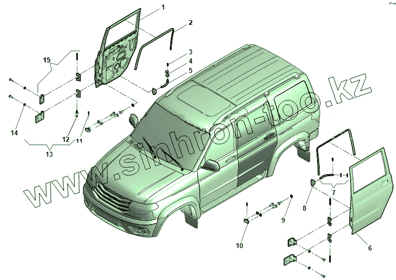 Каталог запасных частей к технике: УАЗ Патриот ЛИМИТЕД 316300-0000305-11. Двери задние