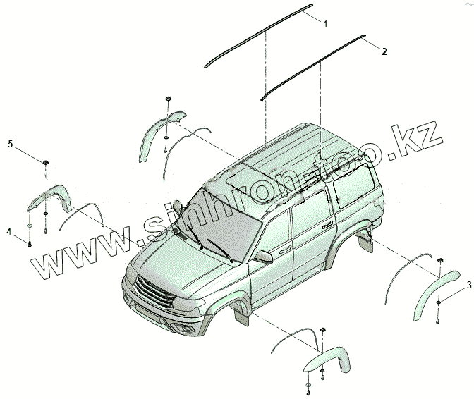 Каталог запасных частей к технике: УАЗ Патриот ЛИМИТЕД 316300-0000305-11. Молдинги кузова