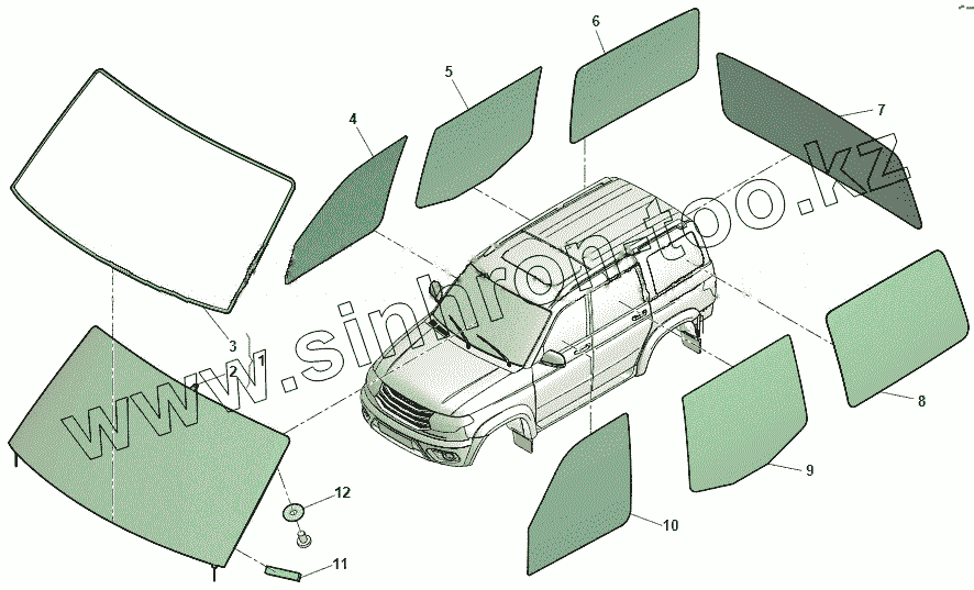 Каталог запасных частей к технике: УАЗ Патриот ЛИМИТЕД 316300-0000305-11. Стекла кузова