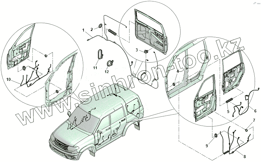 Каталог запасных частей к технике: УАЗ Патриот ЛИМИТЕД 316300-0000305-11. Жгуты дверей