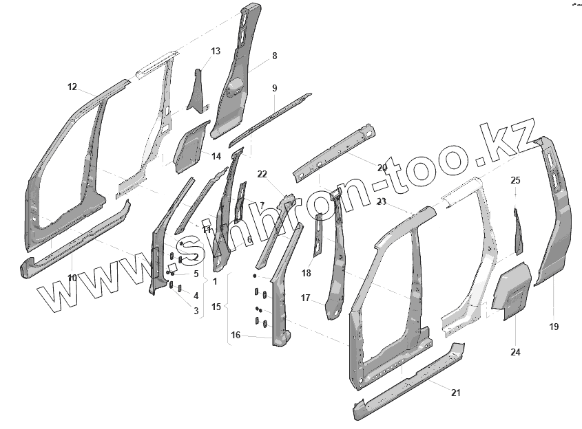 Каталог запасных частей к технике: УАЗ Патриот ПИКАП. Детали боковины