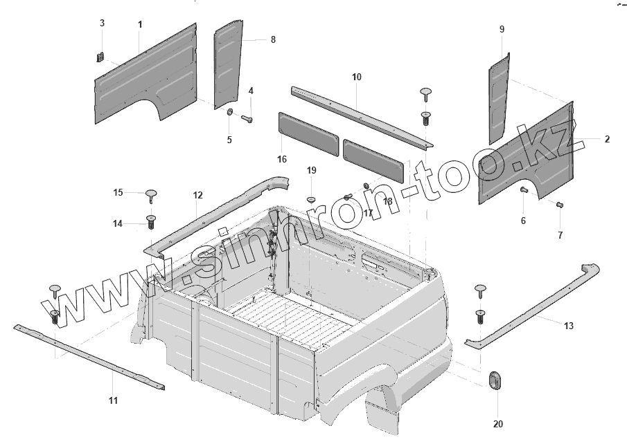 Каталог запасных частей к технике: УАЗ Патриот ПИКАП. Детали отсека грузового
