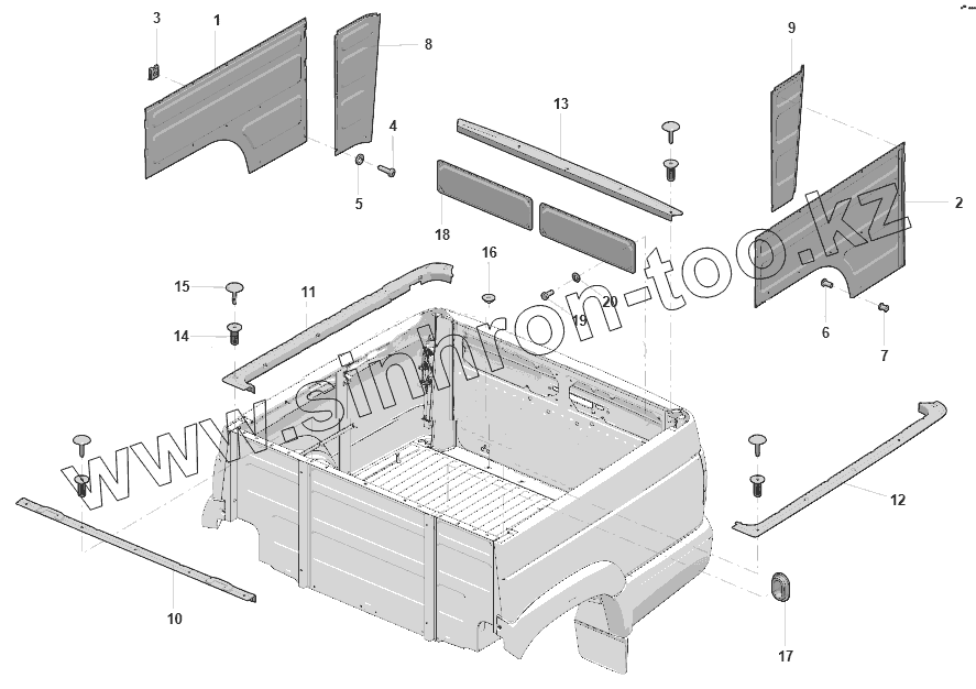 Каталог запасных частей к технике: УАЗ Патриот ПИКАП. Детали отсека грузового