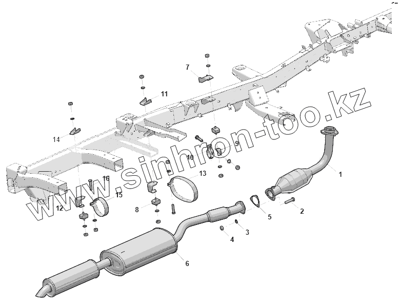 Каталог запасных частей к технике: УАЗ Патриот ПИКАП. Глушитель основной, резонатор двигателя