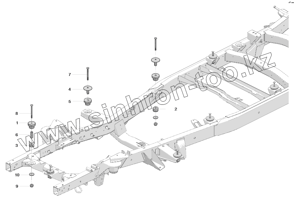 Каталог запасных частей к технике: УАЗ Патриот ПИКАП. Крепеж кабины к раме