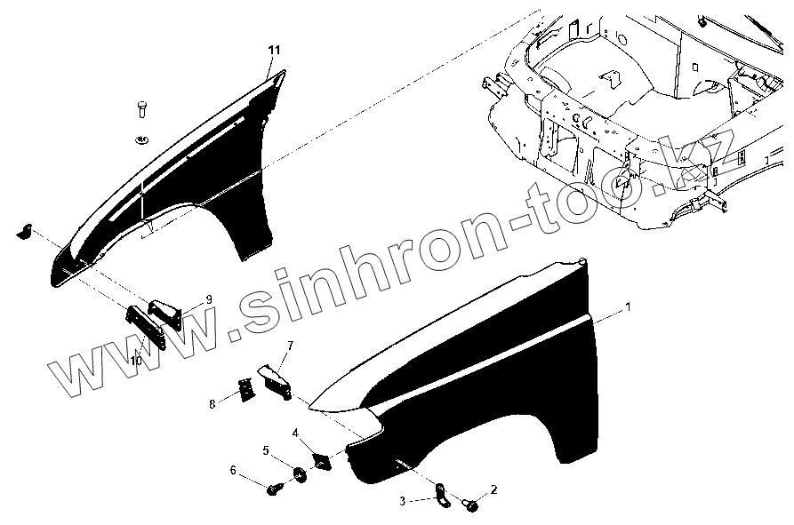 Каталог запасных частей к технике: УАЗ Патриот ПИКАП. Крылья передние