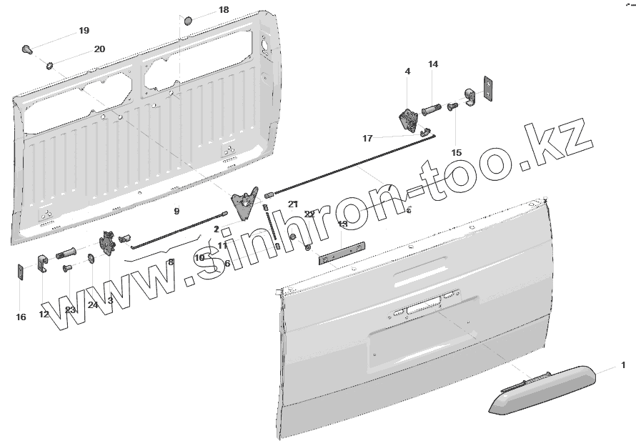 Каталог запасных частей к технике: УАЗ Патриот ПИКАП. Ручка и замок борта заднего