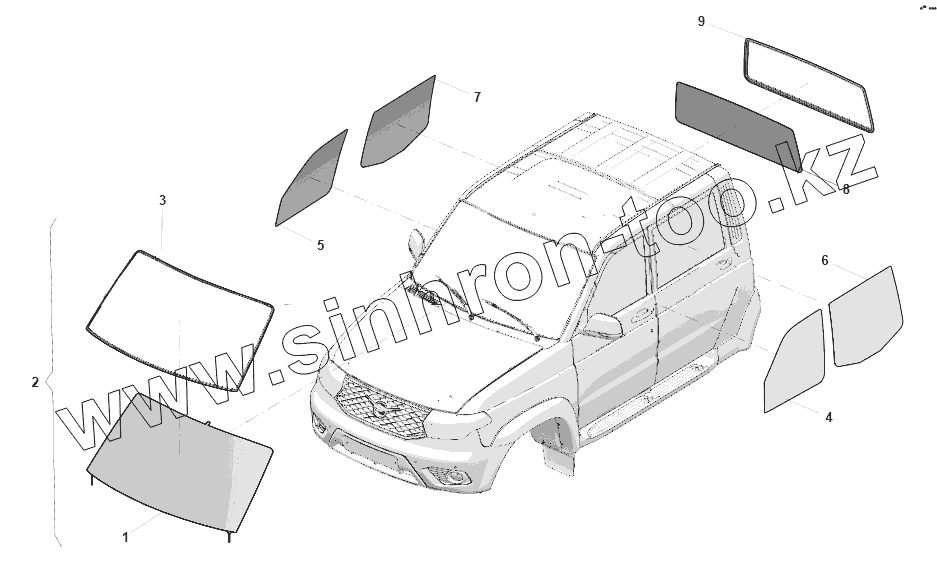 Каталог запасных частей к технике: УАЗ Патриот ПИКАП. Стекла кузова