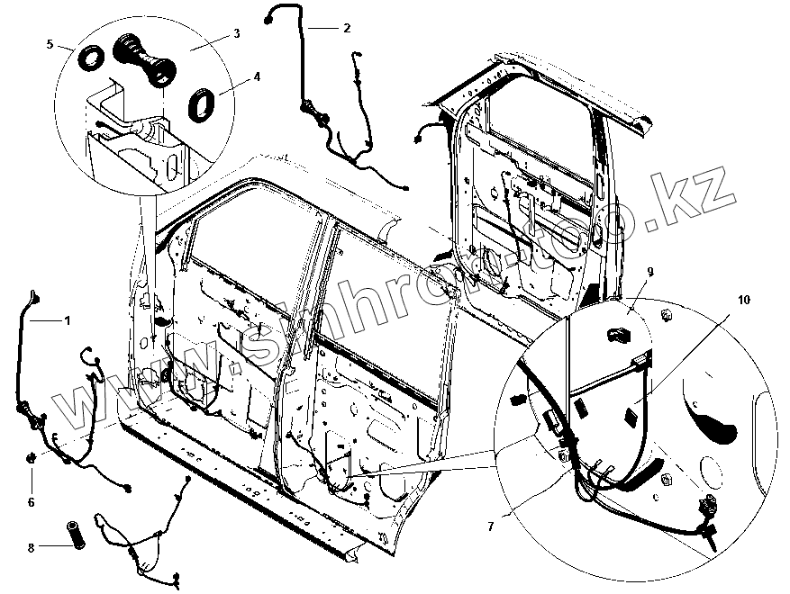 Каталог запасных частей к технике: УАЗ Патриот ПИКАП. Жгуты дверей