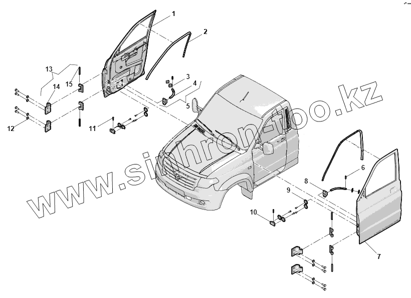 Каталог запасных частей к технике: УАЗ Профи. Двери передние