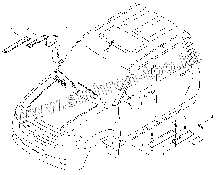 Каталог запасных частей к технике: УАЗ Профи. Облицовка подножки