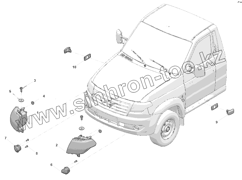 Каталог запасных частей к технике: УАЗ Профи. Освещение переднее