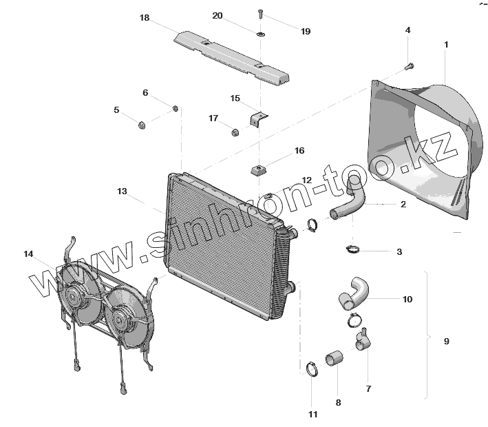 Каталог запасных частей к технике: УАЗ Профи. Радиатор охлаждения