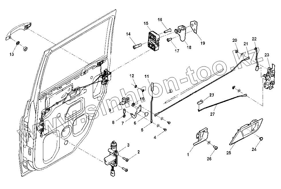 Каталог запасных частей к технике: УАЗ Профи. Ручки и замки двери задней правой