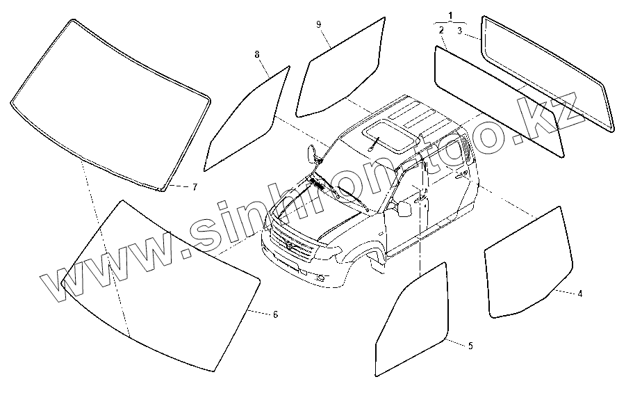 Каталог запасных частей к технике: УАЗ Профи. Стекла кузова