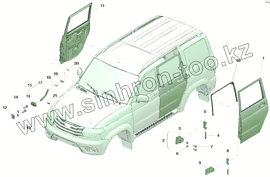 Каталог запасных частей к технике: УАЗ Профи Стандарт (236324-0000014-00). Двери задние