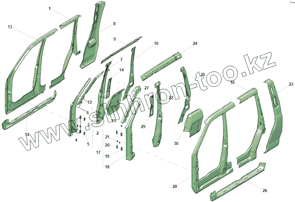 Каталог запасных частей к технике: УАЗ Профи Стандарт (236324-0000100-00). Детали боковины