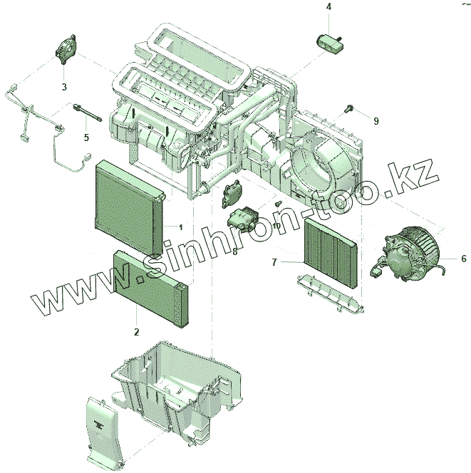 Каталог запасных частей к технике: УАЗ Профи Стандарт (236324-0000100-00). Детали модуля отопителя