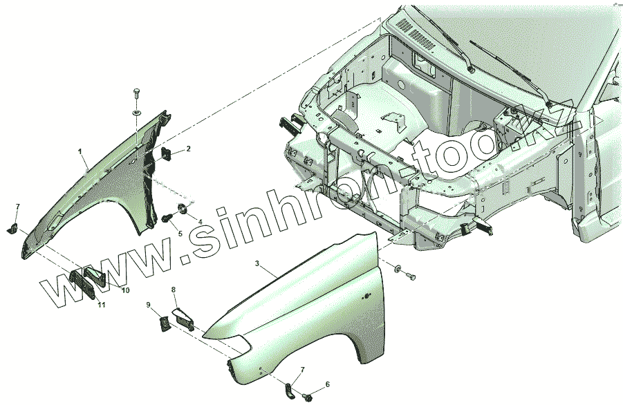 Каталог запасных частей к технике: УАЗ Профи Стандарт (236324-0000100-00). Крылья передние